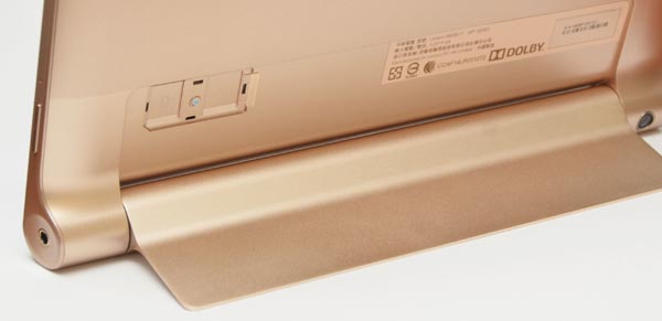 旋轉立架翻開後就讓 Yota Tablet 如同筆電螢幕矗立在桌面。立架內側可看到 micro SD 記憶卡插槽(最高支援 64GB):