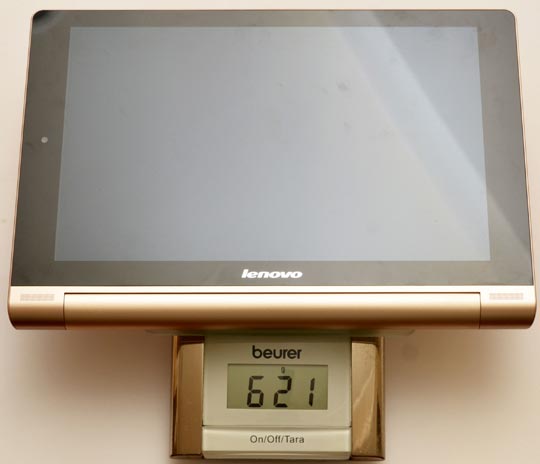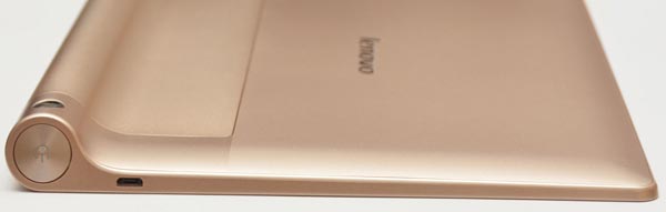 Yoga Tablet 驚人的電池續航力也值得稱道,一般模式可達 42小時(不過規格表的數字是 18小時)。機身的圓筒部分也正是電池收納處(達 9000mAh),因此可比一般平板有更高續航力:
