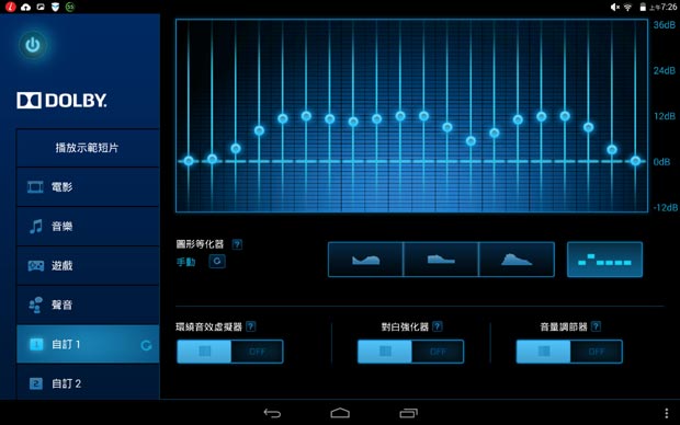 用戶可自定等化器設定: