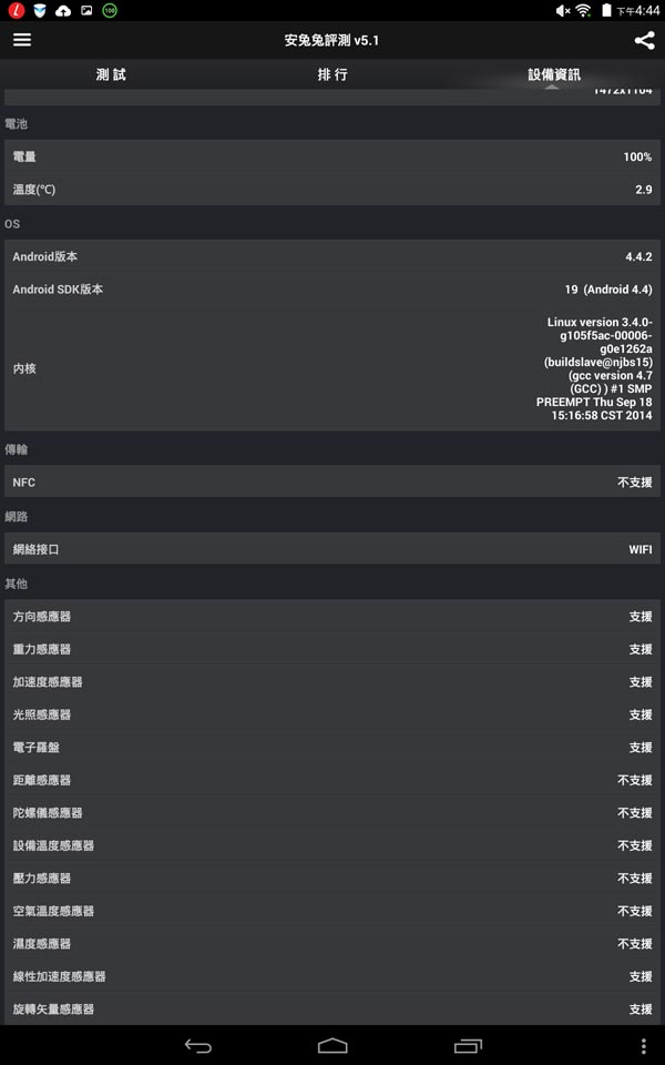 目前最新的韌體為 Android 4.4.2: