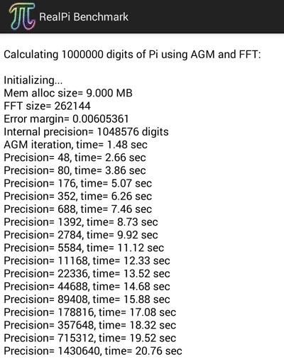 用 RealPi 測試計算 100萬位約 22.59秒:
