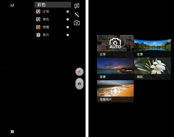 相機的設定並不算多,主相機為 8MP,但沒有閃燈。內建的效果有單色、懷舊、負片等,也支援夜景、微距拍攝:
