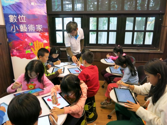 台灣微軟持續關注台灣教育,運用科技力量在不同領域散播關懷種子,以啟發孩童的創造力與夢想實踐力,自9月以來,台灣微軟與美國創新中心 (AIC) 共同推出「數位小藝術家」系列課程,並提供第三代Surface Pro 3與第一代Surface Pro等不同裝置做為教學工具;在12/20更特別以「聖誕老人不上班」作為課程主題,教導小朋友以最新的Surface Pro 3作為科技畫布與Surface 手寫筆來學習數位繪畫,並製作個人專屬的聖誕電子賀卡,幫聖誕老人代班送佳音!