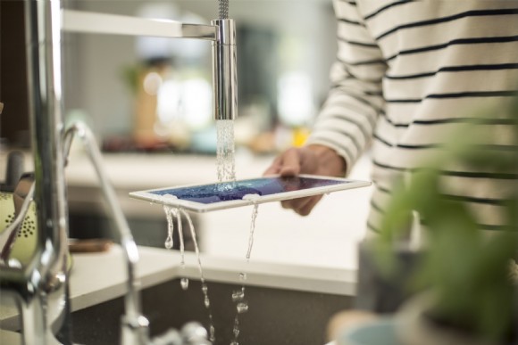 Xperia Z4 Tablet延續Sony極致工藝的精神,傾力打造的絲絲細節,是全球最輕薄的10吋平板電腦,厚度僅6.1釐米,重量僅393公克(389g Wi-Fi / 393g LTE),輕便好攜帶,隨身置於包包內整日亦無負擔;採用金屬邊框與強化玻璃,外型與性能同樣吸睛。Xperia Z4 Tablet的防水防塵效果達IP65/IP68等級4,不論是出門開會時遇雨,或是躺在泳池邊放鬆,都適合每天使用,再加上無蓋式USB連接埠設計,連線或充電更加迅速便捷。