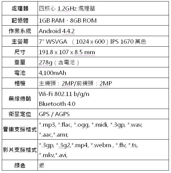 HUAWEI MediaPad T1 7.0採用1,670萬色7吋IPS螢幕,搭配4,100mAh電池容量及華為獨特EMUI 3.0使用介面,建議售價 NT $ 3,490。