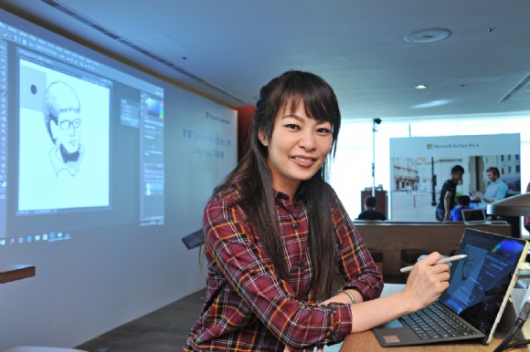 - Surface Pro 4為你繪畫:遊歷世界各地的旅遊畫家、也是台灣第一海上畫家Belle莊蕙如,使用Surface Pro 4作畫,藉由Surface手寫筆不同筆刷筆觸和粗細,可將圖像描繪得更細膩精緻,隨興塗鴉寫真。