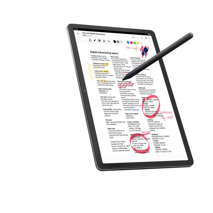磁吸式觸控筆Lenovo Precision Pen 3支援4096級感壓,搭配Lenovo Instant Memo應用程式,不需要解鎖螢幕也可以在Tab P11 Pro(第2代)隨手筆記。側邊實體按鍵兼具遙控功能,可以遠端開啟文件、音樂、圖片和錄音檔等。