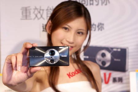 【台北訊-2006年6月15日】柯達正式推出全新的Kodak EasyShare V610雙鏡頭數位相機。V610機身厚度不到一吋,是世界上最小的10倍光學變焦數位相機。相機採用柯達RETINA雙鏡頭技術,超小型的袖珍式設計(111 × 55.5 × 23.2 mm),精密整合其專業品質的SCHNEIDER-KREUZNACH C-VARIOGON 雙鏡頭,讓消費者拍攝出清晰銳利的影像。