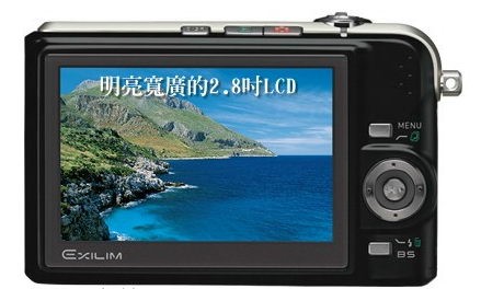 EX-Z1000擁有2.8吋廣域超大液晶螢幕,23萬畫素的清晰顯像加上條列式液晶螢幕讓辨識文字變得更清楚。高達1,200燭光的高亮度液晶螢幕顯示,可隨身處的環境自動調整LCD的亮度或手動設定四種固定亮度。所以即使身處戶外,也不用擔心在陽光下會使您看不見螢幕上面顯示的畫面及文字。