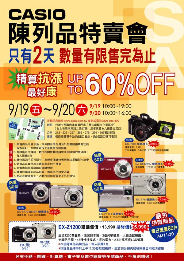 - 為維護各位權益,數位相機販售時請依序排隊領取號碼牌,每人限購2台。