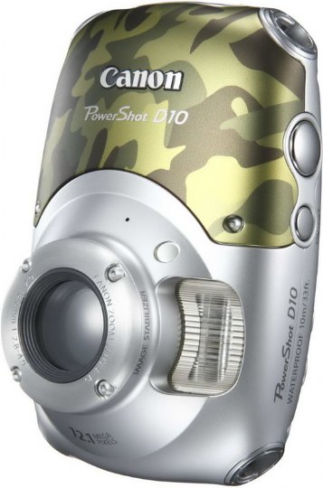 為迎接夏日旅遊季節之來臨,搶攻戶外活動及海邊旅遊之族群,一直創新求變的領導品牌Canon正式宣佈,其最新款戶外型全方位數位相機 PowerShot D10,具備水深10米防水、零下10ºC耐寒、高度1.22米墜落耐衝擊之突破性功能,已正式在台灣上市!PowerShot D10具有堅固而小巧的外型,橢圓形的機身設計來自潛水艇概念,最大的突破是採用了新外殼材料—聚碳酸酯的玻璃纖維,達到質輕緊密的防水特性,因此 PowerShot D10 具有極優異的防水、耐寒、抗摔、防塵之設計,在外出旅遊或進行激烈的戶外活動時,PowerShot D10 都能從容應付各種嚴峻的拍攝環境,尤其特大按鈕之設計,方便在潛水時戴手套於水中容易操作,是Canon專為喜歡戶外休閒運動或潛水活動的族群而設計,不論於海邊遊玩、潛水及各式水上活動、野外、攀岩或滑雪…等各種環境,都能清晰拍攝留下精采的時刻。