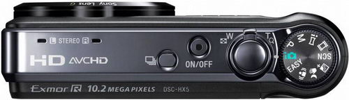 HX5V 也內建 Exmor R CMOS 感光元件,在 LCD 方面則是 3.0吋螢幕,還可使用 10fps 超高速連拍 10MP 照片。HX5V 同時也提供了手持全景掃描拍攝模式,以及 HDR 高動態範圍拍攝。以下是 Sony DSC-HX5V 詳細規格: