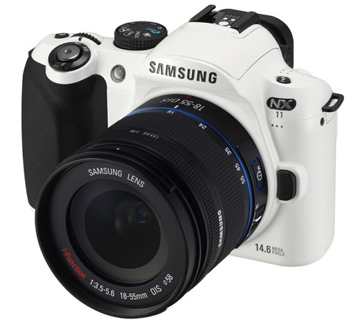 Samsung NX11在台僅推出白色機款,雪白色調的輕巧外型設計讓玩家愛不釋手,讓單調呆板的類單眼相機注入時尚元素,Samsung NX11在握把設計的部分有大幅突破,符合人體工學為設計概念,更注重操作感的使用者需求,舒適簡單的流線造型讓掌鏡更上手,操作起來更加俐落有型。此外, Samsung NX11 搭載i-Function按鍵,能調整如光圈值、快門速度、感光度與白平衡等一般拍攝模式,搭配電子觀景窗、內建彈出式閃燈與操作轉盤,拍攝時更能精準迅速的捕捉完美瞬間。