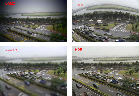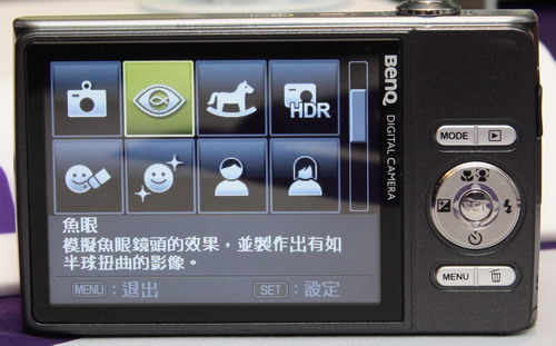 訴求Easy Catch這麼好拍,大家都愛拍的BenQ數位相機,為增添相機展現自我、有趣簡單的使用經驗,將多種特殊攝影效果整合於一機,包含玩具模式、LOMO風格、色彩強化、魚眼鏡頭等。玩具模式是將圖片上下模糊處理,並強化中間物件主題的色彩對比;以前,要擁有玩具模式必須使用移軸鏡專業相機或修圖軟體,BenQ P1410將專業相機上的特殊效果帶入數位相機中,讓使用者可更簡單自由的發揮創意。另外包括仿復古相機的LOMO風格、有趣的魚眼鏡頭轉換物件成半球型大頭狗影像、及突顯物件重點顏色的色彩強化,更為照片增添迷人的個人風格。