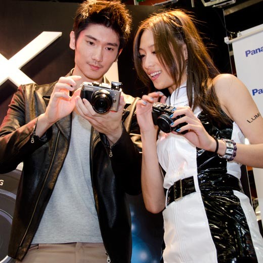 受到各界熱烈討論的GX1謎樣之姿終於揭曉!全新的LUMIX DMC-GX1旗艦高階輕單眼相機,在各界引頸期盼下於2011年12月3日下午在台北資訊月LUMIX攤位震撼登場!神祕性感的爵士舞蹈表演揭開發表會序幕,透過LUMIX10周年經典作品回顧,GX1正式揭開神秘面紗。現場更邀請知名男模高宇橋帶著時尚有型的GX1和外型美豔、身材高挑的model一同走秀,現場頓時閃光燈齊放成為本次資訊月會場的焦點目光。