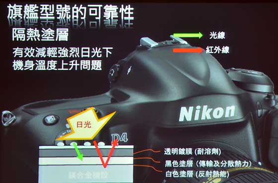 Nikon 全幅旗艦新機 D4 今天終於正式亮相了。這款 16MP FX 格式感光元件的重量級機種,特別強調 "多重媒體" (multi-media) 的能力,除了 Full HD 錄影外,也加入 Ethernet LAN連線功能,使用瀏覽器可透過電腦、手機來控制相機,另外也支援 XQN 儲存媒體新規格。XQD 可讓記憶卡寫入速度由 125MB/sec 起跳,更能滿足 D4 在高速連拍(10-11fps)時的快速寫入需求,處理速度也比D3s 快 22倍。台灣預計二月中旬上市,建議售價 NT$189,000。