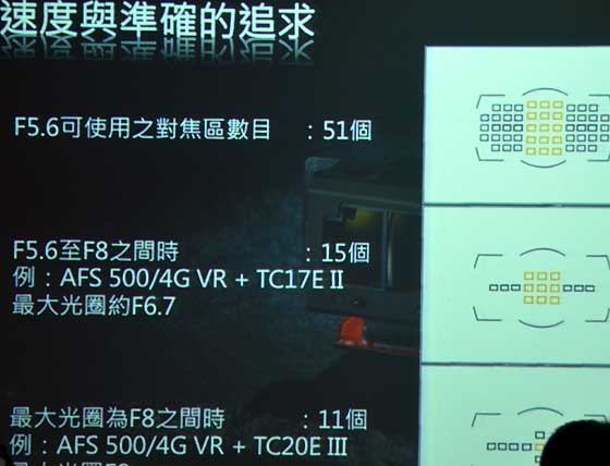 - 對焦點: 51點 AF 含中央 15個十字對焦點。使用最大光圈 f8 鏡頭時,仍有 11點可用