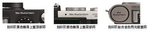 此外,相機也可在上蓋頂部、上蓋背部、閃光燈蓋等位置,刻印上專屬文字,這更能確保獨一無二。配件方面,也可以選擇適合搭配相機顏色的相機背帶與半截式皮套,更能夠使每一台Leica a la carte相機成為獨特別緻且為德國製造的X2數位相機。