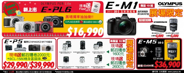 新品上市歡慶聖誕展場限定抽抽樂: 紅球: E-PL6底座肩帶組 / 白球: 郵政禮券1000元