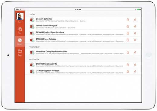 因應人們希望能隨時隨地將事情打點好的需求,此應用程式可以與微軟的雲端服務無縫整合,讓您可以透過OneDrive、OneDrive for Business以及SharePoint存取文件的最新版本。因為這些應用程式能夠智慧判斷該文件最新的處理進度與最新版本,即使使用不同的行動裝置;甚至如果網路連線暫時中斷,您仍然可以繼續處理在iPad上最近一次使用的該文件。