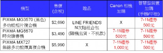 每天上FB臉書看親朋好友的照片還不夠?好想把珍貴時光列印出來好好保存,於春電展會場購買Canon相機或智慧型裝置(手機/平板電腦),不限廠牌,憑發票或購買明細,加購Canon時尚臉書機PIXMA MG5570及PIXMA MG3570多功能相片複合機,直接加贈7-11禮券,還可擁有超可愛LINE FRIENDS N次貼組合包(隨機出貨,不挑款),讓你時時擁有好心情。購買Canon全系列墨水,第2顆享有7折優惠(以低價者計),購買4x6相片紙還能享有買一送一等好康。
