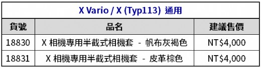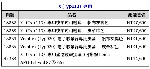 Leica 發表 X 系列最新機種 - Leica X (Typ113) 定焦輕便相機,使用全新的 Leica Summilux 23mm f/1.7 ASPH. 徠卡定焦鏡頭及大尺寸感光元件,另外也新增如 full-HD錄影功能。此款全新德國製造相機,2014年10月在台上市,建議售價NT$74,000元(單機身),有經典全黑或雅致銀色兩種配色。