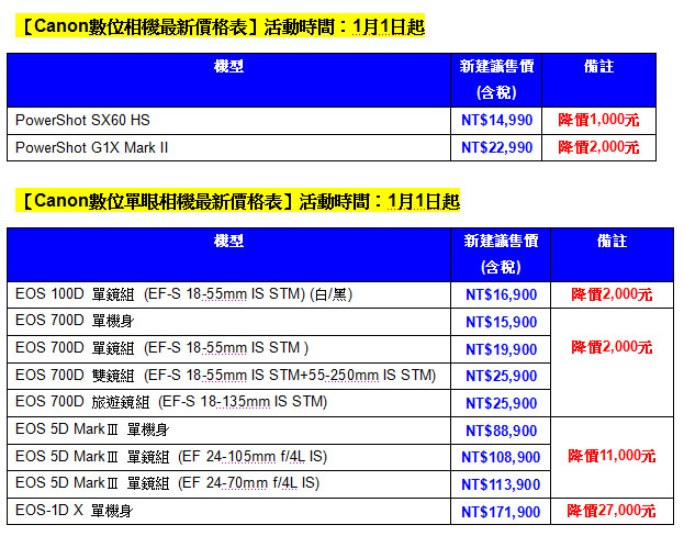Canon 數位相機新春大降價,1D X 降 27000,5D Mark III 降萬元以上