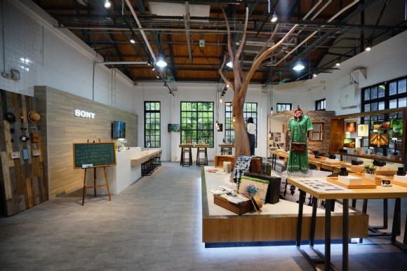 坐落於匯集各類展覽及風格小店的華山文創園區中,「Sony 華山坊」將週遭濃厚的藝文氣息延伸至店內,不僅融合了木質系裝潢、嚴選的復古小物以及結合展覽和café的複合式空間設計,產品的擺設也首重體驗與情境,讓消費者在選購3C產品的過程,也同步享受一段有品質的時光。