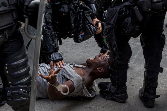 這幅影像紀實了在哥倫比亞-麥德林這個城市的抗爭行動,防爆隊伍正在驅離參與抗議的工人及路邊攤販,這樣的抗爭活動近年來在拉丁美洲相當氾濫,主要是抗議生活物價高漲以及不平等的待遇。