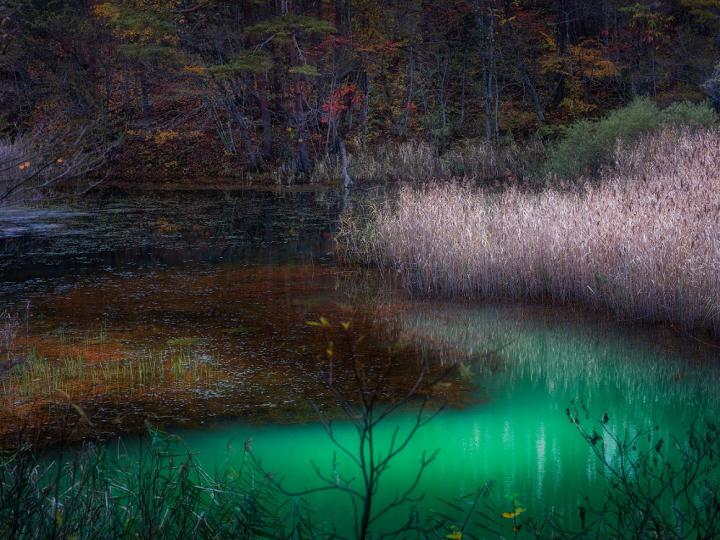 來自台灣的攝影師Stanly Lin以作品《Field of Dreams》獲選公開賽風景類別的入圍名單,拍攝於日本著名景點福島五色沼,火山噴發而形成的多個沼澤,因蘊含不同礦物質經陽光反射讓沼澤呈現翠綠、湛藍或淡紅等各種色彩,秋天湖岸紅葉點綴的美景讓人彷彿置身夢境。