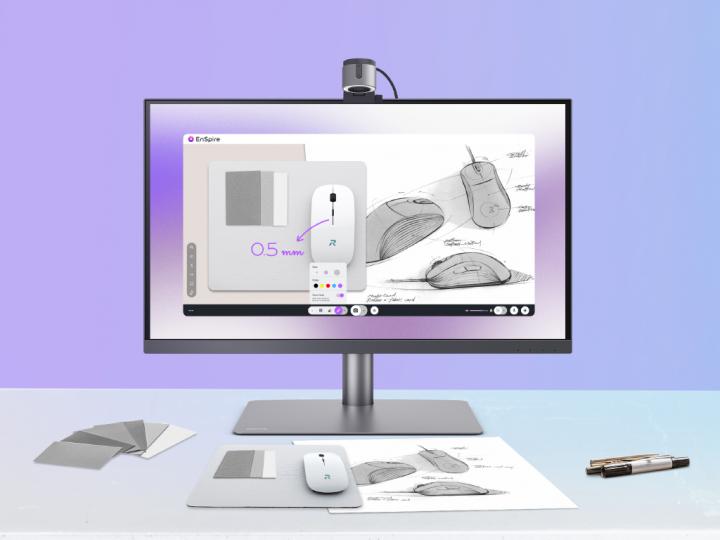 ideaCam 還能搭配專屬的無線遙控器(註2)與線上畫面編輯軟體 EnSpire,讓功能進一步延伸。進行實物拍攝時,使用EnSpire無線遙控器的實體按鍵進行畫面放大、縮小、麥克風靜音與截圖等功能。EnSpire 則為BenQ 獨家開發的線上軟體,無需下載即可搭配 Chrome、Edge 等瀏覽器使用,並支援畫面凍結、梯形校正、線上註記、尺規量測、一鍵縮放、子母畫面等多元功能。搭配 Google Meet、Teams、Zoom 等視訊軟體的分享分頁功能,即可讓與會者都能看到EnSpire的視窗畫面,滿足線上會議所需。