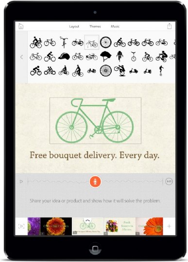 Adobe 今日宣布推出專為 iPad 設計的全新動畫影片應用程式 Adobe Voice,讓所有人都具備創作和分享生動影像故事的能力。用戶可透過 Adobe Voice 結合自己的錄音、圖片、音樂、電影素材動畫和不同的效果,賦予通知、說服或鼓勵他人採取行動的能力。Adobe Voice 的設計能協助用戶在網頁上和社群媒體發揮其影響力,且不必運用任何拍攝或剪輯技巧。Adobe Voice 為多種行業的理想工具,有助創意專業人士製作專案原型、為非營利組織推動事務、為小型企業業主與客戶聯繫、為學生製作互動和生動報告等。用戶只需分享連結至社群媒體、電子郵件、個人部落格及網頁,便可快速分享動畫影片,並可透過任何裝置來檢視。