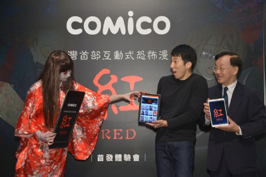 comico推出專為手機繪製的原生原創連載漫畫應用軟體,帶領漫畫進入手機平台,並加入最新互動式特效,提供讀者全方位聽覺與視覺感受,發展最適合手機呈現的漫畫內容。comico今日(22日)正式推出台灣第一部互動式手機恐怖漫畫《紅》,於重點故事情節加上音效、動畫特效,閱讀漫畫時,彷若身歷其境。此外,comico將於11月11日舉辦「第一屆comico原創新作大賞」,祭出30萬高額獎金及完善的漫畫培育課程給冠軍得獎者,獎金及獎品總值超過100萬元,挖掘並培育台灣優秀漫畫人才。