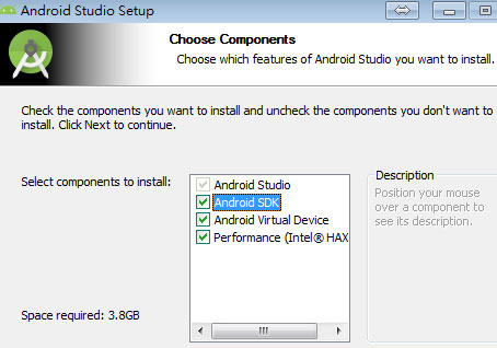 安裝時也可選擇要不要順便安裝 Android SDK,當然也可事後再更新各種不同版本的 SDK:
