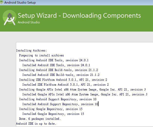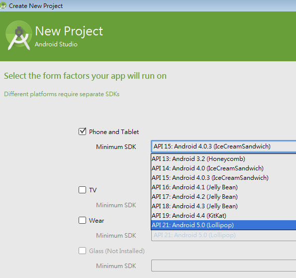 自動安裝的 SDK 中也包含了 Lollipop Android 5.0: