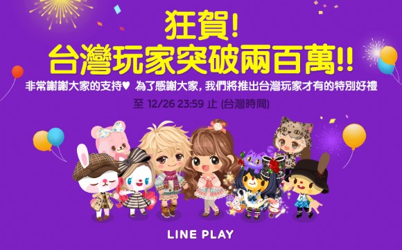 LINE旗下模擬經營策略遊戲LINE PLAY在台灣受歡迎,今(18)日宣布台灣玩家所創造出的虛擬人偶數已超過200萬,為了回饋台灣玩家,LINE PLAY特別與台灣人氣插畫家Cherng合作,推出官方虛擬人偶及專屬房間,凡於期間(12/18~12/26)拜訪馬來貘專屬房間,就可免費獲得Cherng特別準備的限定好禮。