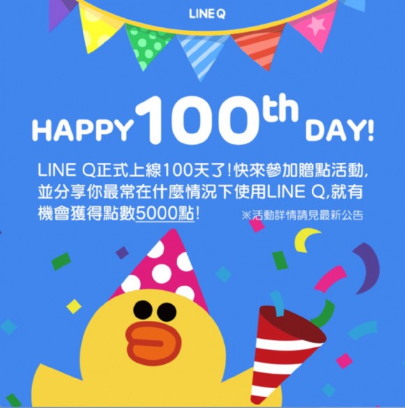 LINE Q歡慶上線100 天 「HAPPY 100th DAY!感恩贈點活動」點數免費大放送