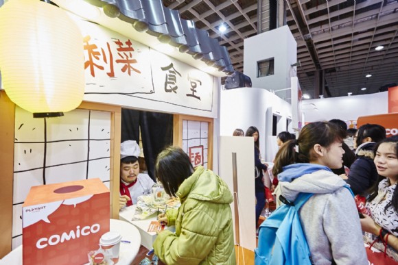 comico攤位提供「愛的三嗨關」闖關遊戲,凡通過「愛的試煉」、「賀年摸一把」及「Play Ball」三個關卡,不僅可至comico台灣漫畫《阿鼻桑德羅之美味大冒險》的實體剩菜食堂領取「療癒系剩菜」-紅茶與茶點組乙份,還可參加每日14:30及17:30的小花幸運轉盤抽獎,獎項內容豐富,最大獎除了可獲iPad mini3、Nexus 9平板,還有其他豐富好禮及限量週邊商品。