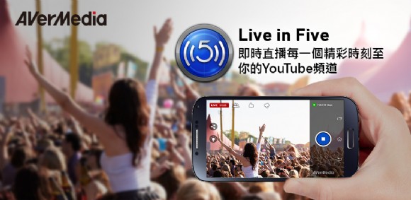 圓剛科技推出首支即時直播串流APP -「Live in Five」,讓手機立即化身為直播機。只要使用者持有Android裝置即可下載安裝Live in Five應用程式。安裝設定完成後,僅需按下「Live in Five」的直播鍵即可在個人的YouTube頻道上做直播,將精彩的每一個瞬間分享給家人或朋友。直播的同時,使用者的精彩瞬間也將備存於個人YouTube頻道上。