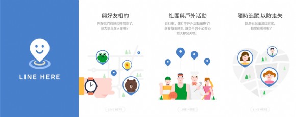 「LINE HERE」即時定位分享服務,用戶能分享所在位置,讓約會尋人更方便