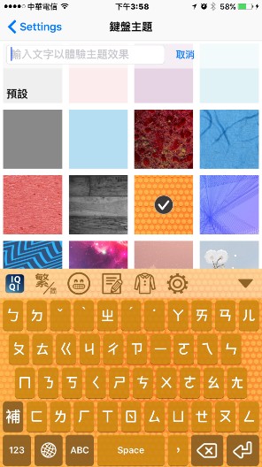 厭倦了手機一成不變的白色鍵盤嗎?IQQI 快注音一口氣給你38種(iOS版目前提供16種)不同風格的個人化鍵盤主題,隨心意自由選擇,還支援最多三色漸層設計鍵盤主題,以及用自己喜歡的照片搭配鍵盤按鍵樣式、符號顏色,創造出自己的專屬鍵盤主題(漸層顏色與照片功能,目前僅Android版提供)。