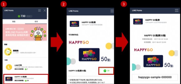 LINE Points兌換HAPPY GO點數說明: