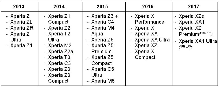 Sony Mobile已推出30款支援NFC感應式行動支付的智慧手機,用戶至Google Play下載「t wallet +」APP,綁定信用卡,即可使用NFC感應刷卡支付,詳如下表。