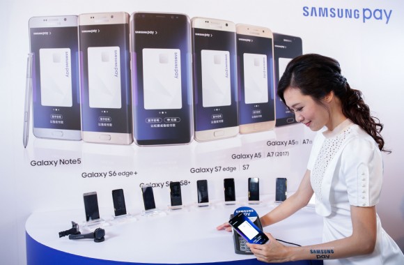 三星電子,攜手國泰世華銀行、玉山銀行、台新銀行、花旗(台灣)銀行、台北富邦銀行、聯邦銀行、渣打國際商業銀行等七大銀行,並聯合兩大發卡組織Visa及萬事達卡,宣佈Samsung Pay正式登陸台灣行動支付市場。儼然已是全球行動支付界霸主的Samsung Pay已廣泛使用於15個國家,並與全球超過870家銀行合作,累積交易數量突破2億4,000萬筆。單韓國及美國上線半年內註冊用戶即衝破500萬人,而韓國本土市場在上線一周年後累計交易金額更高達近20億美元(2兆韓元)。