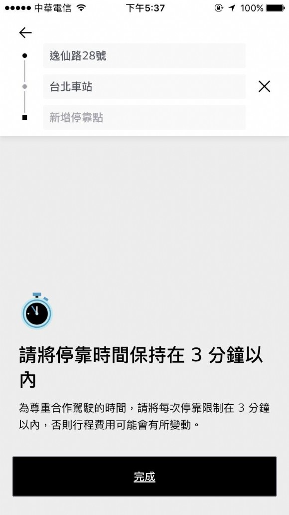 步驟三:在行程中變更,從App的主畫面進入行程畫面,即可新增、變更或移除停靠點。行程前輸入所有停靠點,讓您能在確認預約租車前,就得知該趟行程的車資收費。行程中新增停靠點,系統則必須重新計算即時報價,因而可能產生車資差異。