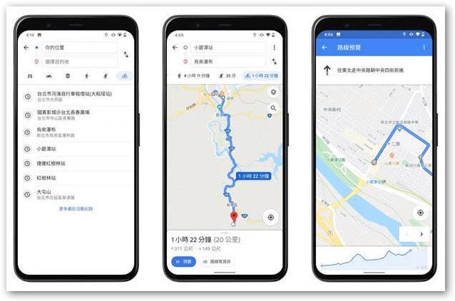 台灣各地景色多樣且有豐富的地形變化,過去台灣的單車族使用 Google 地圖時,只能參照汽機車或步行路線,有時難免遇到如上坡等不利於單車騎行的路段。Google 地圖單車模式整合交通部提供的開放資料,考量單車專用道及汽機車無法行駛的道路資訊,為台灣的單車族計算出適合的路線,並標示出推薦路線的坡度變化,以利使用者規劃行程。除了能查看單車專屬的行程建議,使用者也將能在 Google 地圖上開啟「單車路線」圖層,查看單車專用道和適合單車騎乘的道路資訊。