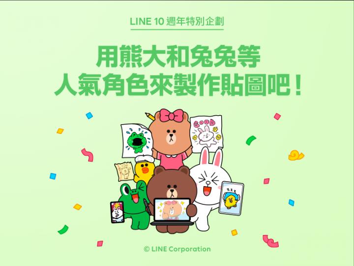 LINE於今天正式邁入十週年,熊大、兔兔等角色貼圖在聊天室中陪伴大家創造許多回憶,為回應用戶們十年來的支持和喜愛,首度開放全民使用BROWN&FRIENDS角色創作貼圖,不分年齡、性別都能創作出屬於你獨有風格的熊大、兔兔等角色貼圖,期待號召全民一同參與「大家一起來創作BROWN&FRIENDS!」原創貼圖活動。
