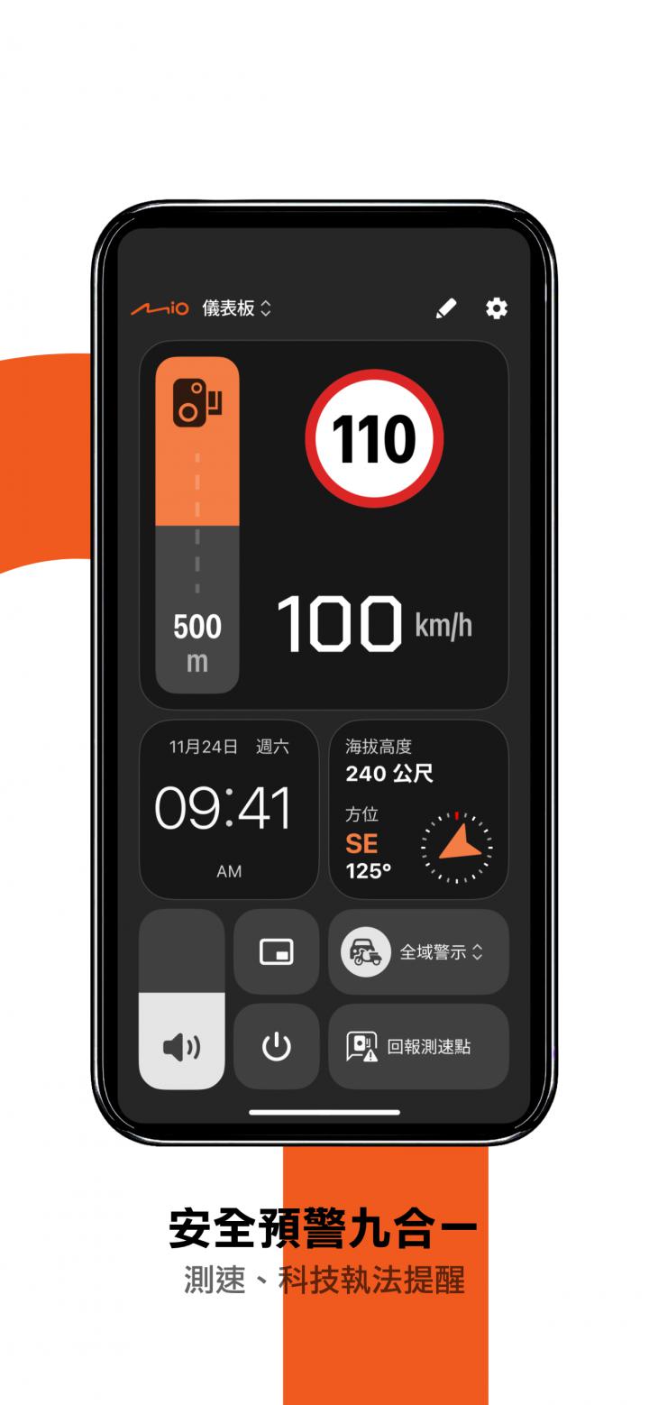 為了讓每位用路人都能享有先進的安全技術,「Mio神速」提供 iOS 與 Android 雙平台完整版免費下載,且不需綁約或付費解鎖功能。App 介面設計直觀,開啟後即可從儀表板掌握車速、速限、警示狀態等資訊。首頁也可依個人偏好自訂介面排列,用戶可將自己最在意的資訊放在最顯眼位置,打造專屬的行車安全輔助視窗。