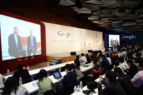 Google今(4)日舉辦「Google 行動視界(The Mobile First World)」亞太區媒體活動,深入探討亞洲「行動第一」風潮引領全球行動趨勢,從裝置、應用、內容到行動購物商機,剖析亞洲行動革命如何持續延燒!會中除邀請Google全球工程副總裁暨Google Play亞太區負責人Chris Yerga等高階主管蒞臨現場,揭露最新的亞太行動趨勢與創新應用外,更特別安排Google 執行董事長Eric E. Schmidt以視訊方式驚喜現身,顯示Google對於亞洲行動市場與產業的高度重視!