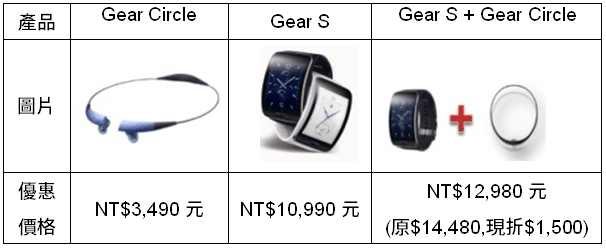 Samsung Gear S的3G獨立通話及數據功能,能插入nano SIM卡獨立運作,隨時接收來電及訊息。搭載2吋的曲面Super AMOLED螢幕,別緻的弧形設計與手腕線條舒適貼合,並可更換錶帶;另外更擁有IP67防水防塵、內建多項感應器、GPS定位導航、S Health功能,為生活及運動休閒最佳良伴。而全新的Gear Circle搭配獨特的磁力扣設計,透過藍牙與智慧型裝置配對,即可接聽電話、聽音樂、下達語音指令;在接獲來電或APP訊息時以振動及語音通知,輕鬆不漏接任何重要訊息采。